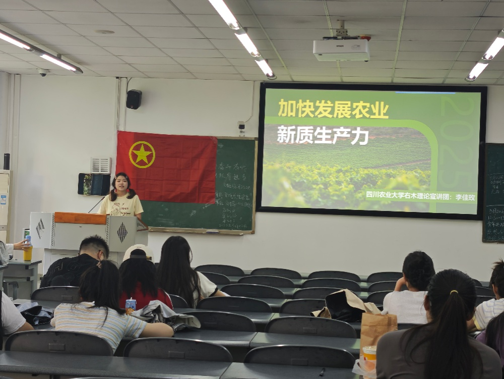 为深入学习贯彻2025年全国两会精神,推动农业强国战略走深走实,5月22日上午,右木理论宣讲团成员李佳玫应邀参加了财务2022级2班的主题班团活动,开展了主题为“加快发展农业新质生产力”的理论宣讲。