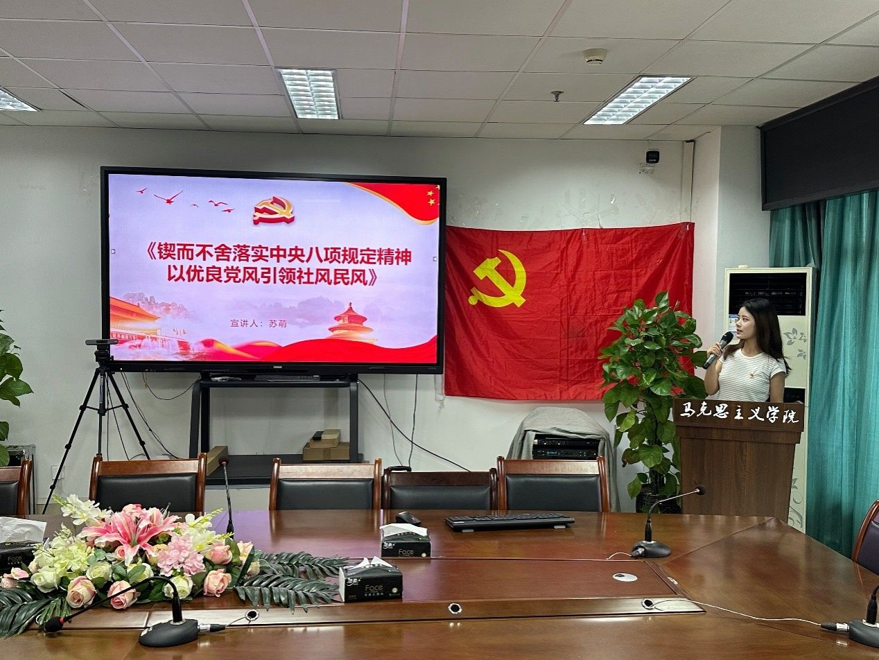 为深化党的作风建设理论学习,推动青年党员筑牢思想根基。2025年6月26日,ok138cn太阳集团529右木理论宣讲团成员苏萌面向ok138cn太阳集团529马克思主义学院研究生第二党支部、第三支部开展了《锲而不舍落实中央八项规定精神 以优良党风引领社风民风》主题宣讲活动。