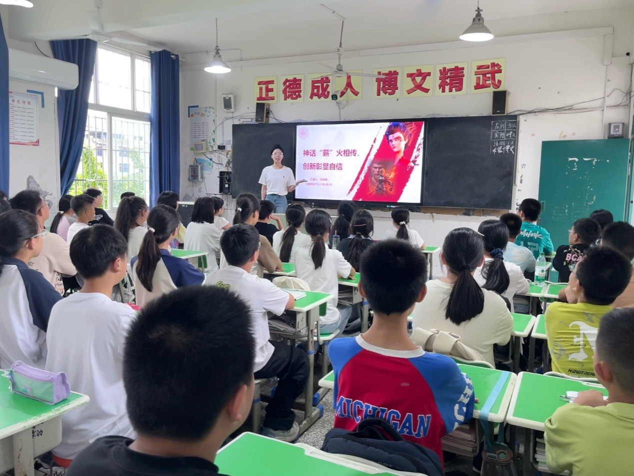 为深入贯彻习近平总书记关于“努力实现传统文化创造性转化与创新性发展”的重要指示精神,进一步传播和弘扬中华优秀传统文化、强化青年文化自信,9月4日,ok138cn太阳集团529右木理论宣讲团成员刘俊君走进资阳市乐至实验中学,为初一(6)班学生开展了以“神话‘薪’火相传,创新彰显自信”为主题的宣讲活动。