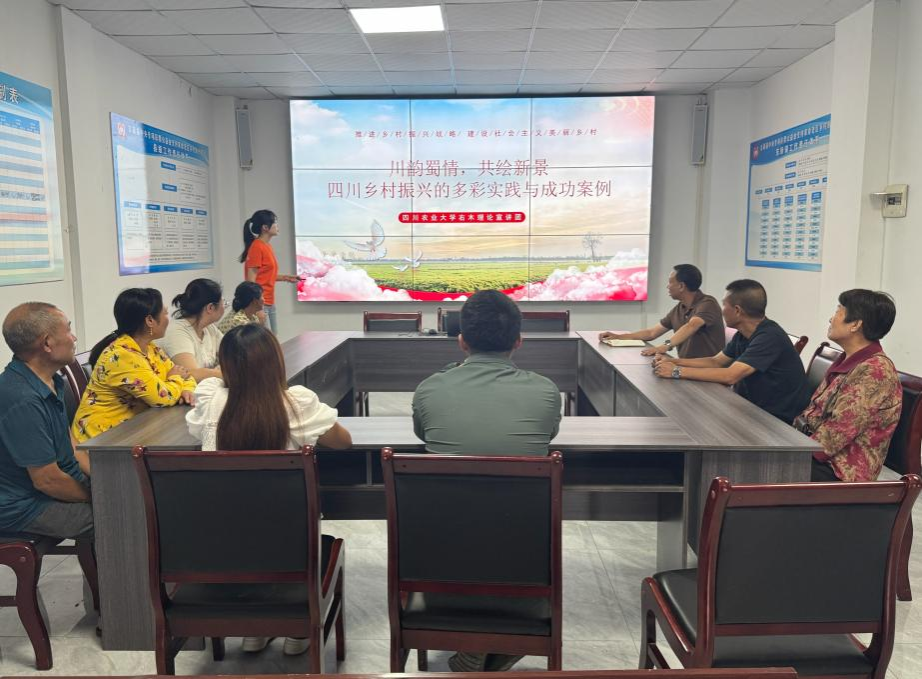 宣讲中,团队成员余沙碧首先结合“三农”政策核心,介绍四川农业省情与政策支撑体系:聚焦四川省“十四五”乡村振兴战略规划中现代农业园区建设、农村基础设施补短板等强农目标,详解“一干多支、五区协同”战略如何因地制宜赋能农业发展——以成都平原为农业主干区辐射带动周边,推动不同区域形成特色农业发展路径,为村民厘清政策与农业生产、农村发展的关联。