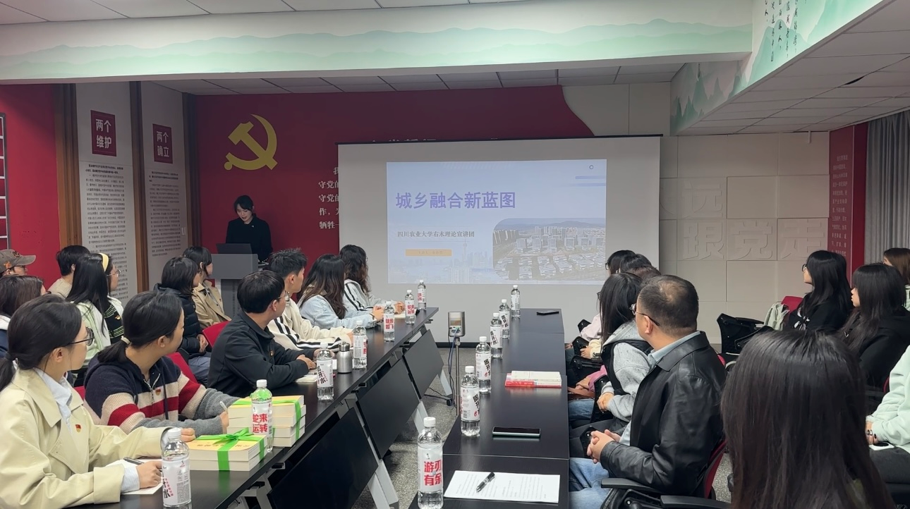 宣讲中,余沙碧围绕城乡融合发展的重要意义、目标方向、基本遵循和实践路径展开阐述。她结合成都龙泉驿锦绣天府片区、浙江嘉兴、成都温江幸福村等鲜活案例,生动解读了党的二十届四中全会关于“促进城乡融合发展”的具体部署,详细介绍了“农业+”产业融合模式、县域城乡融合切入点作用等实践经验。从耕地保护到要素流动,从民生改善到共同富裕,余沙碧系统梳理了城乡融合发展的核心要义,让在场师生对这一中国式现代化的必然要求有了全面深刻的认识。