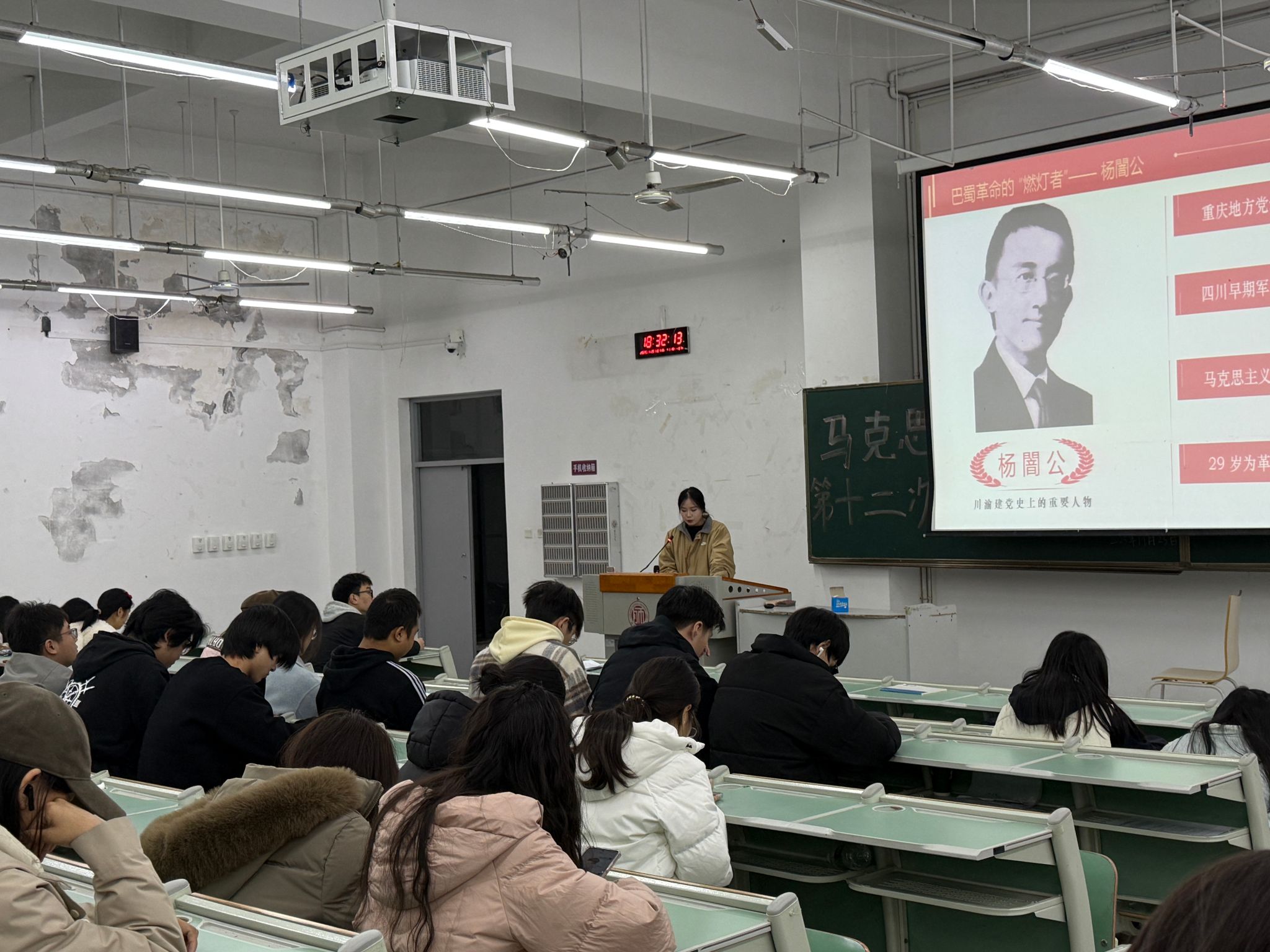 11月23日下午,右木理论宣讲团成员熊小洋在成都师范学院为马克思主义学院学生作了题为《从爱国青年到革命先锋——杨闇公烈士的革命人生与精神传承》的主题宣讲。