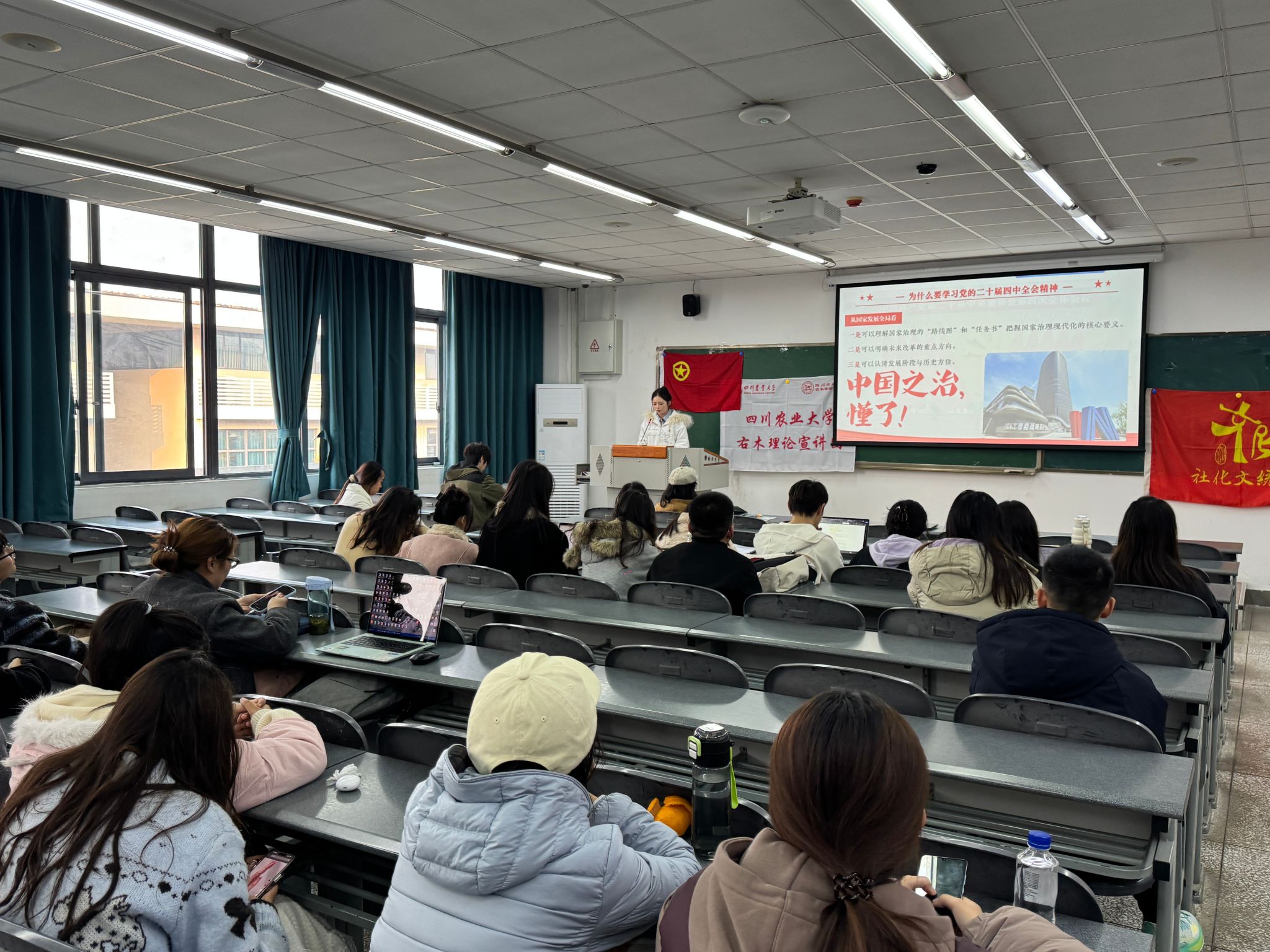 宣讲现场气氛热烈,内容深入浅出,引发了在场同学的广泛共鸣。大家认真聆听、积极思考,并在互动环节踊跃提问、深入交流。同学们纷纷表示,通过此次学习,对党的二十届四中全会精神有了更清晰、更全面的认识,进一步增强了理论认同与行动自觉,将在今后的学习与实践中努力将全会精神转化为奋进动力,立志做有理想、敢担当、能吃苦、肯奋斗的新时代好青年。