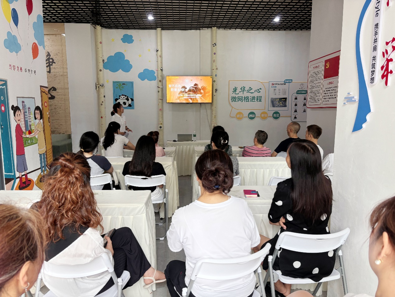 成员以一部火灾教育警示片中关于起火的视频,引入本次宣讲,告诫广大居民朋友们火灾离大家并不远,随后以“消防基础知识”、“常用灭火方法”、“常用消防设备及其使用方法”、“火灾逃生技能”四个部分为大家讲解消防及火灾的基本知识,在宣讲中,成员将宣讲展示和教育视频学习相结合,通过视频,向大家展示常用消防设备的使用以及高层建筑逃生的注意事项,让消防知识更好深入群众心中。