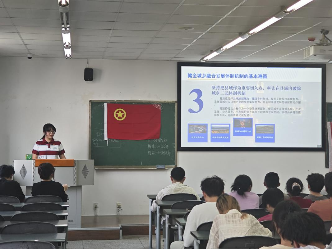 首先,刘相堰围党的二十届三中全会精神,向参与团日活动的同学们介绍了召开党的二十届三中全会的目的、意义和基本内容。在此基础上,刘相堰结合详实的数据,介绍了新时代以来我国全面深化改革取得的历史性成就、发生的历史性变革。最后,刘相堰通过蒲江县甘溪镇明月村这一案例,深入浅出地解读了完善城乡融合一体化发展体制机制的重要意义、基本遵循及具体路径。