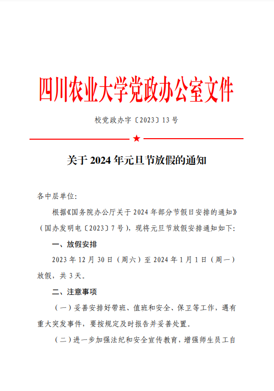 马克思主义学院2024年元旦节放假值班安排