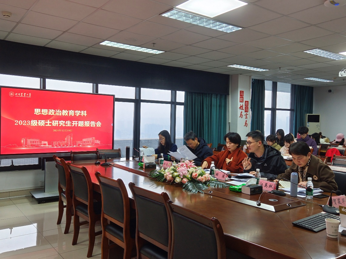 12月19日,马克思主义学院思想政治教育专业2023级研究生学位论文开题报告会于7教1607会议室顺利举行。西南财经大学马克思主义学院胡建教授担任答辩委员会主席,成员有西华大学马克思主义学院刘英教授、ok138cn太阳集团529马克思主义学院江英飒教授、赵国友教授、窦存芳教授,贺筱华老师为答辩秘书。思想政治教育专业2023级全体研究生参与答辩汇报,2024级研究生与会旁听。